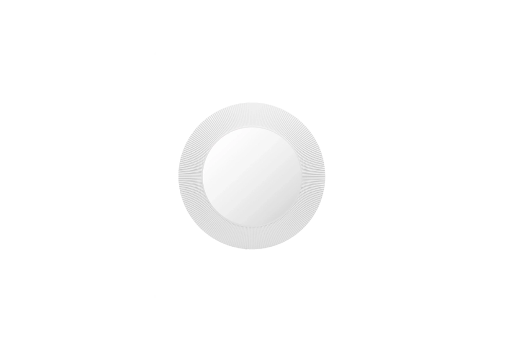 Miroir rond à cadre en transparent ou coloré, effet plissé.