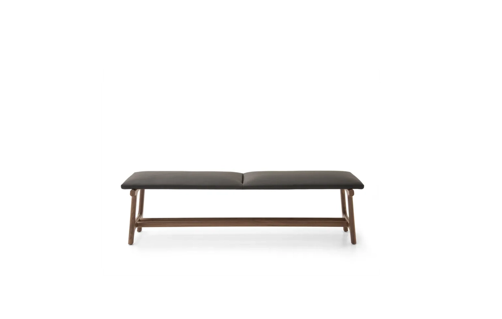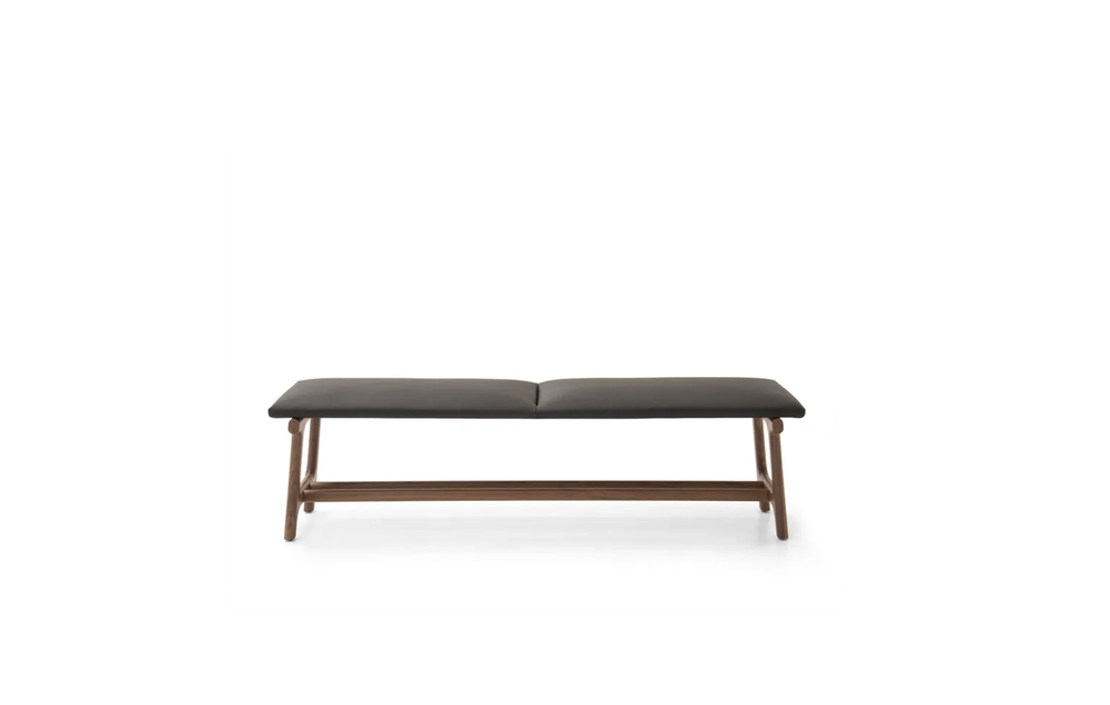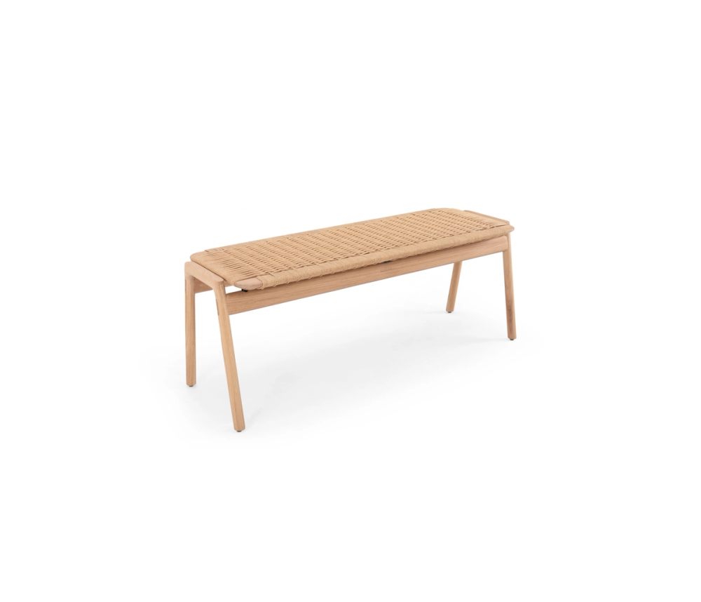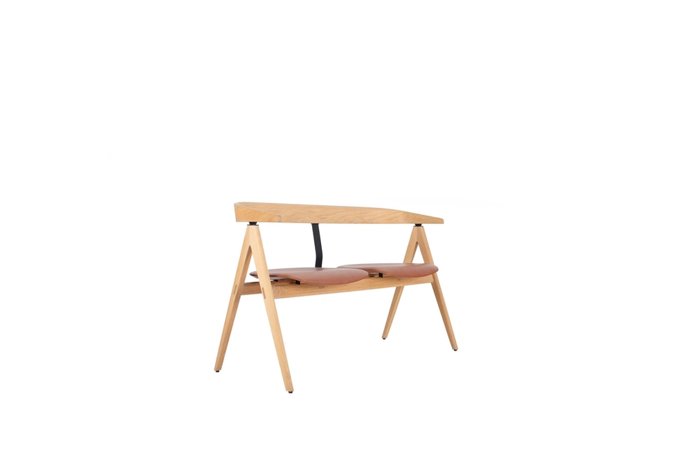 Le banc Ava souligne le caractère sculptural d'un mobilier atypique. Sa structure en bois massif, associée à son intrigant duo d'assises, évoque le charme d'un « banc des amoureux », terme inventé par ceux qui ont d'abord admiré son savoir-faire.