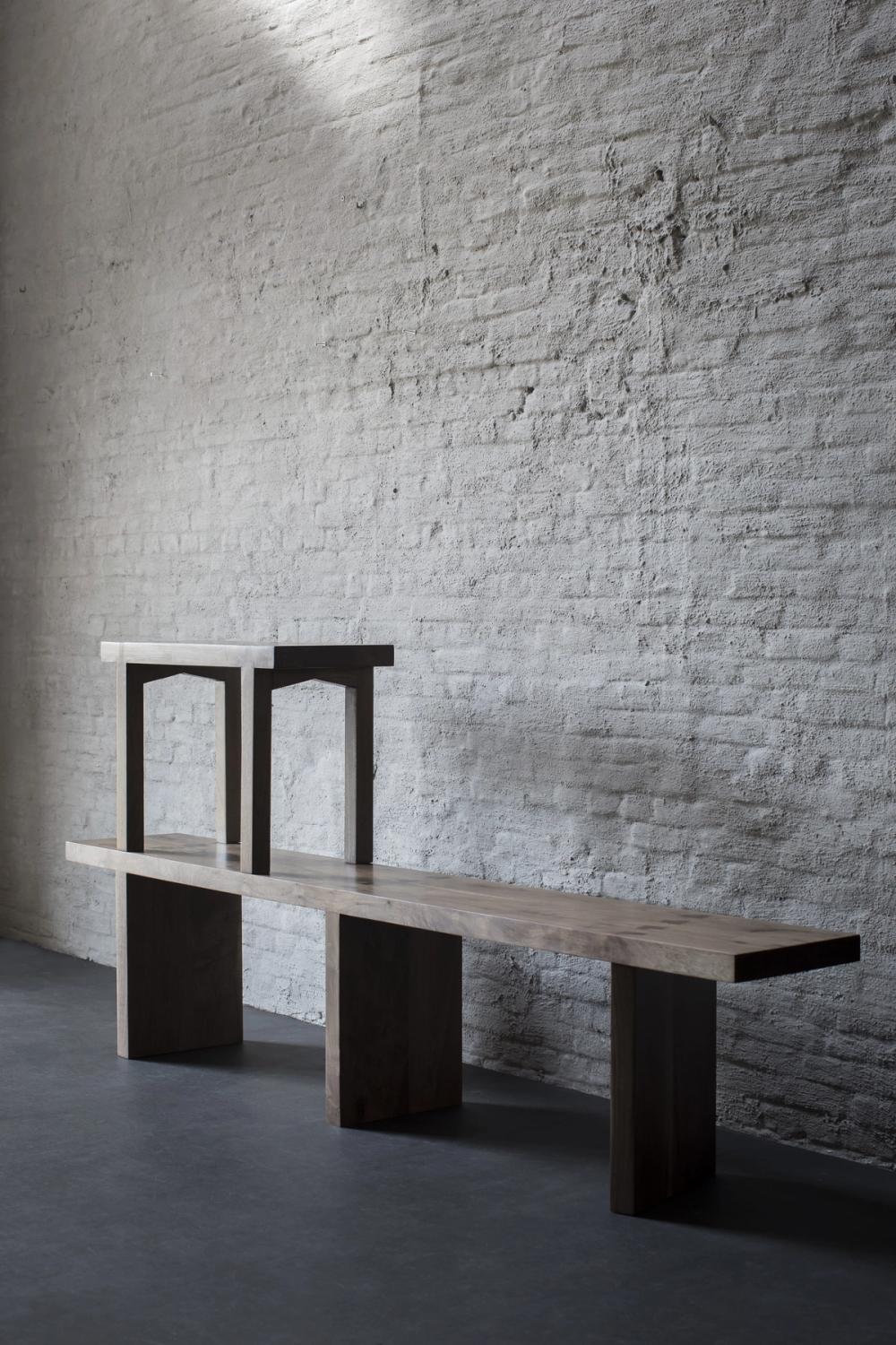 Banc entièrement en bois dessiné par Ronan and Erwan Bouroullec.