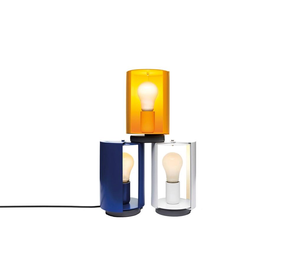 Un socle à quatre rails offre la possibilité d'installer librement des diffuseurs de tailles et de finitions différentes, créant ainsi à chaque fois une lampe unique, ludique et infiniment personnalisée.