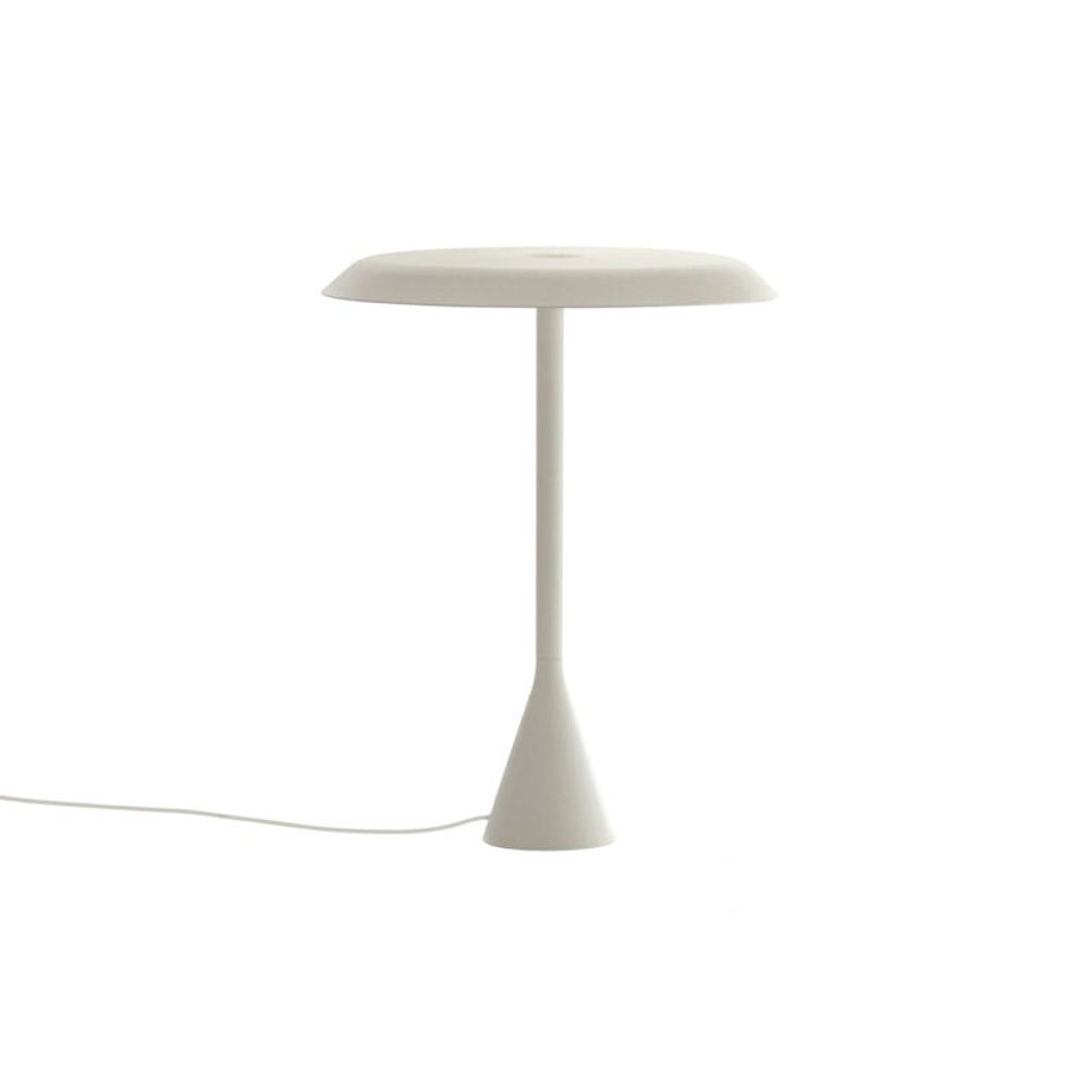 Panama associe une silhouette épurée et linéaire à un pied conique, une tige fine et un abat-jour plat. La version mini est également disponible avec une batterie rechargeable sans fil.