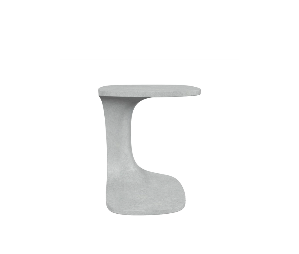 Table basse polyvalente en ciment s’inspirant d’un caractère typographique, Font convient également à un usage extérieur.