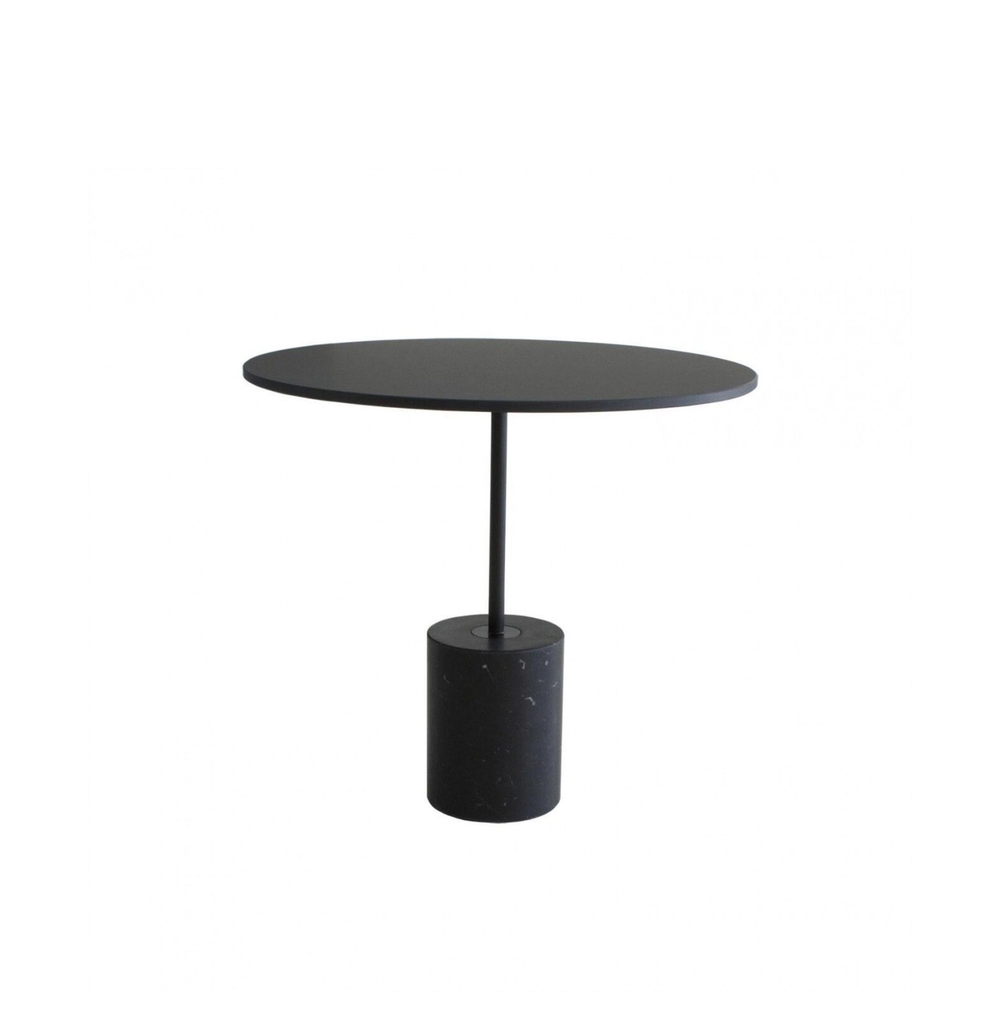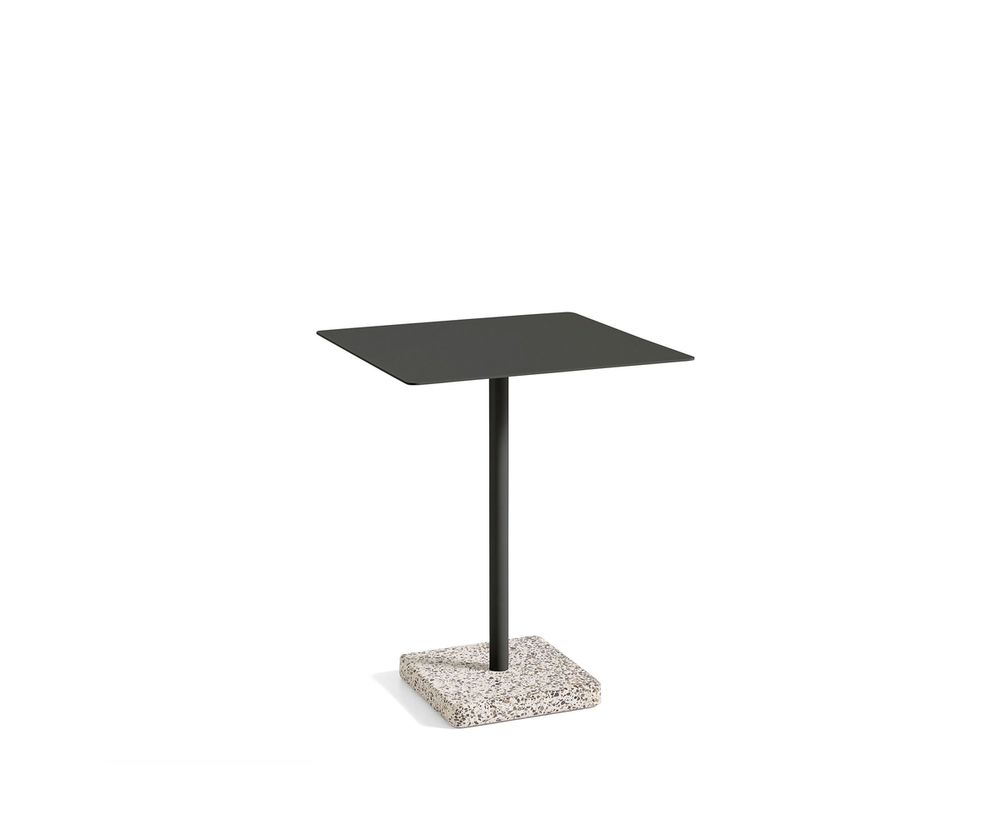 La table Terrazzo de Daniel Enoksso présente un plateau rond ou carré en acier. Disponible avec un plateau rond de diamètre 70 cm ou avec un plateau carré de 60 cm.