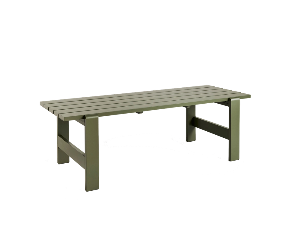 Conçue pour HAY par Erwan Bouroullec, la table Traverse fait partie d'une collection de mobilier d'extérieur conçue pour s'intégrer naturellement à tous les espaces. Composée d'une structure en aluminium moulé sous pression et d'un plateau à lattes en frêne traité thermiquement, elle allie robustesse et charme intemporel.