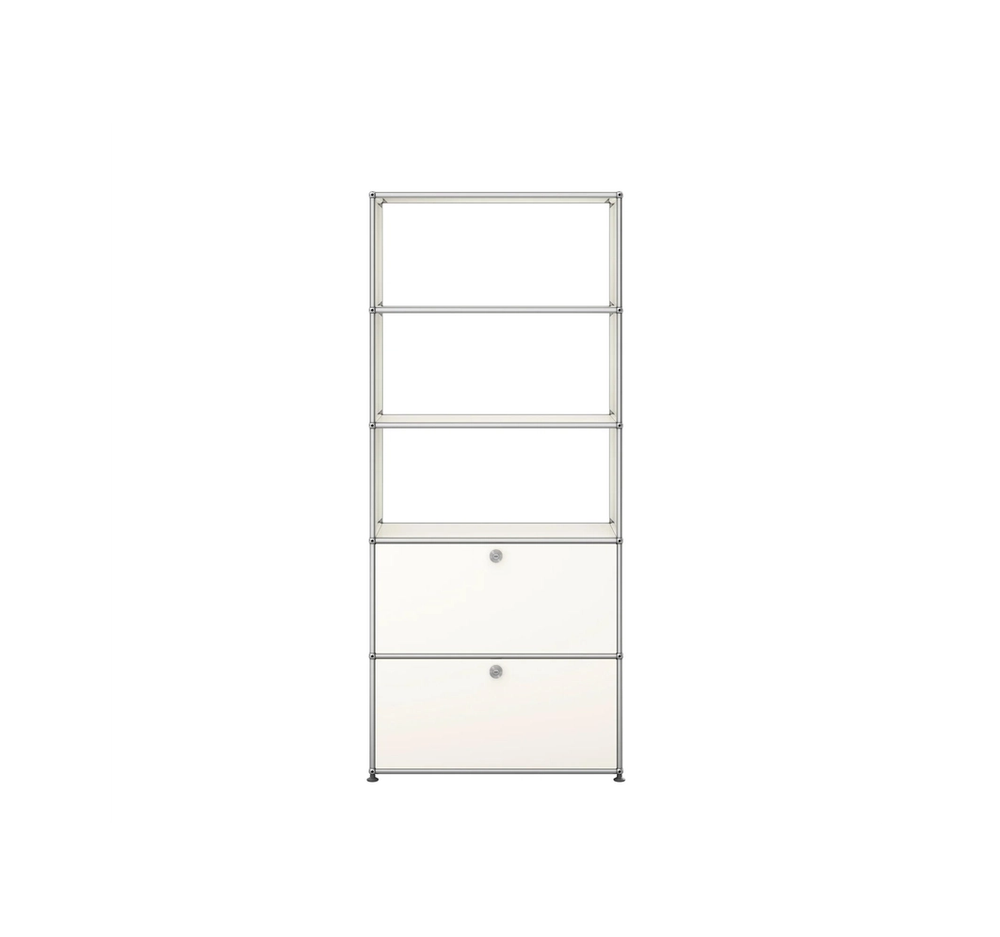 Bibliothèque USM entièrement modulable. Structure chromée, nombreuses possibilités de couleurs pour les panneaux.
