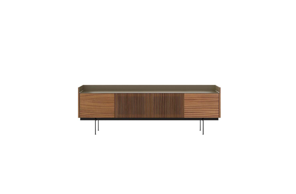 Le bois est omniprésent, tant dans son essence que dans le détail des portes, caractérisées par un motif vertical qui confère une dimension tridimensionnelle à cet objet essentiel.