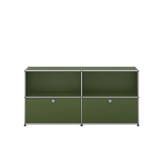 Meuble TV USM entièrement modulable. Structure chromée, nombreuses possibilités de couleurs pour les panneaux.