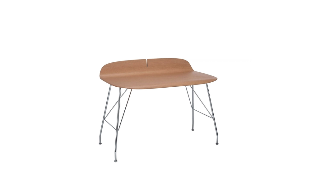 EARL OF WOOD est le nouveau bureau au design essentiel. Son plateau multifonctionnel en bois cintré répond aux besoins des mondes Office et Habitat.
