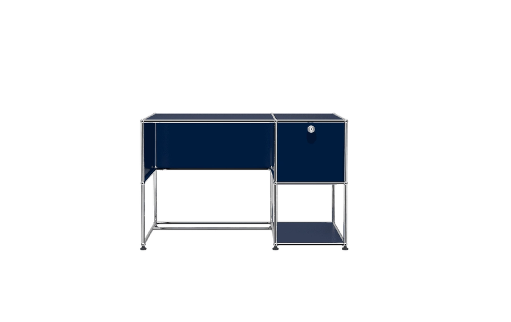 Bureau USM entièrement modulable. Structure chromée, nombreuses possibilités de couleurs pour les panneaux.