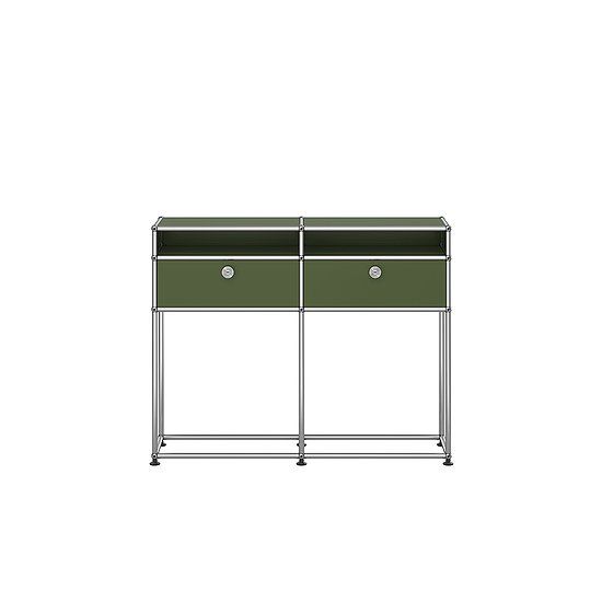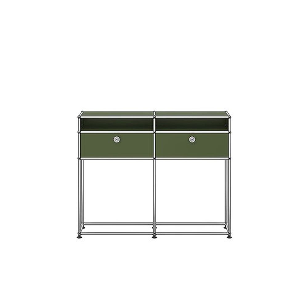 Console USM entièrement modulable. Structure chromée, nombreuses possibilités de couleurs pour les panneaux.