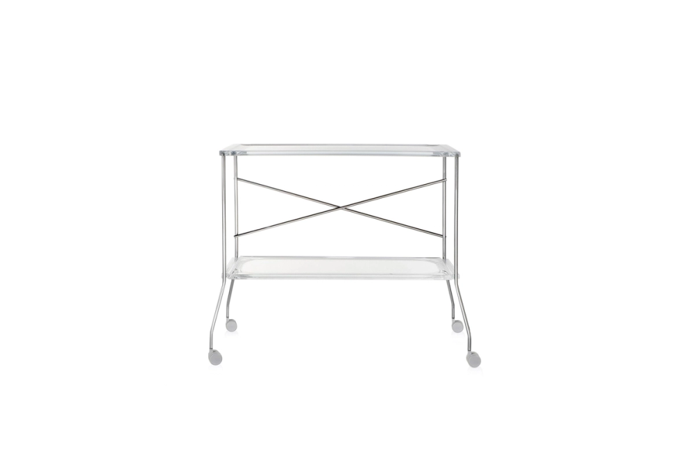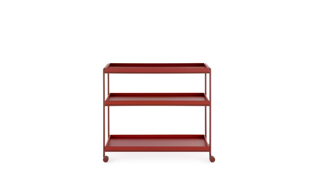 Flip peut être utilisé soit comme chariot soit comme table basse, très pratique devant le canapé. Flip est un chariot pliant : fermé, il occupe très peu d'espace et se range extrêmement facilement.