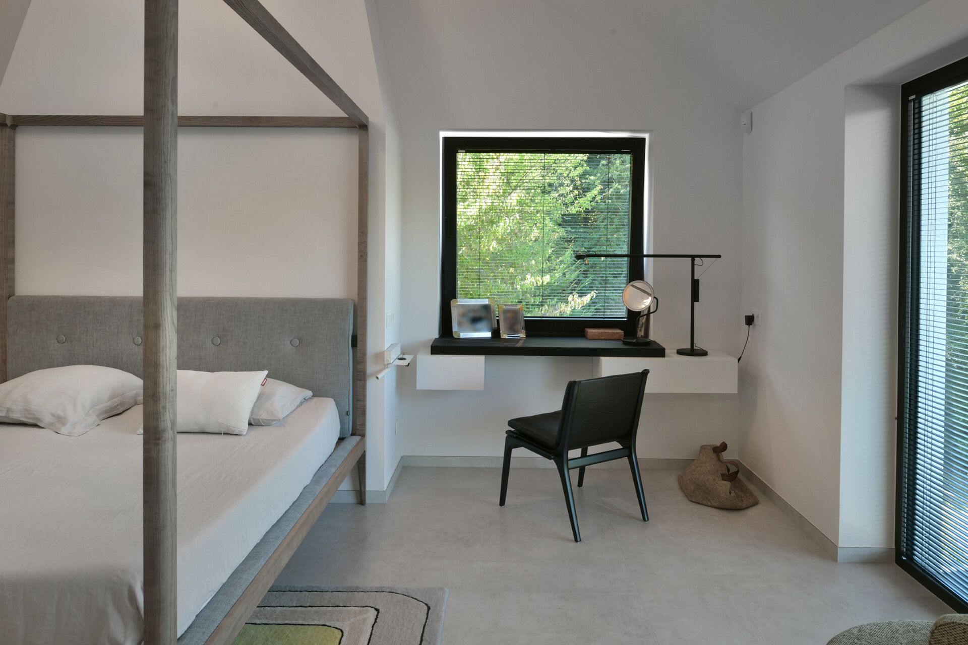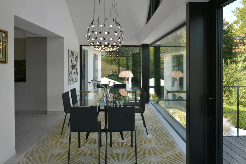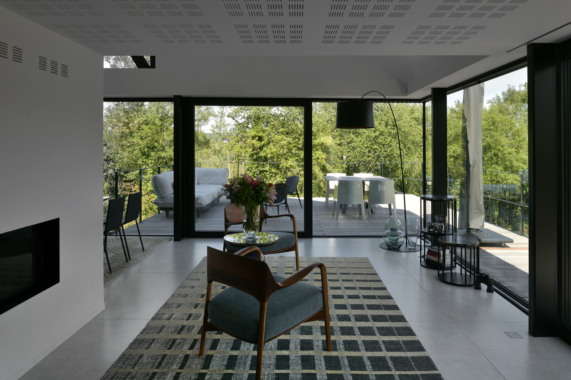 L’implantation du mobilier d’intérieur a été pensée pour prolonger cette ouverture vers l’extérieur : lignes épurées, circulation fluide et choix de textures naturelles renforcent la sensation de continuité entre intérieur et paysage. Ce projet illustre notre volonté de créer des espaces chaleureux, fonctionnels et profondément connectés à la nature.