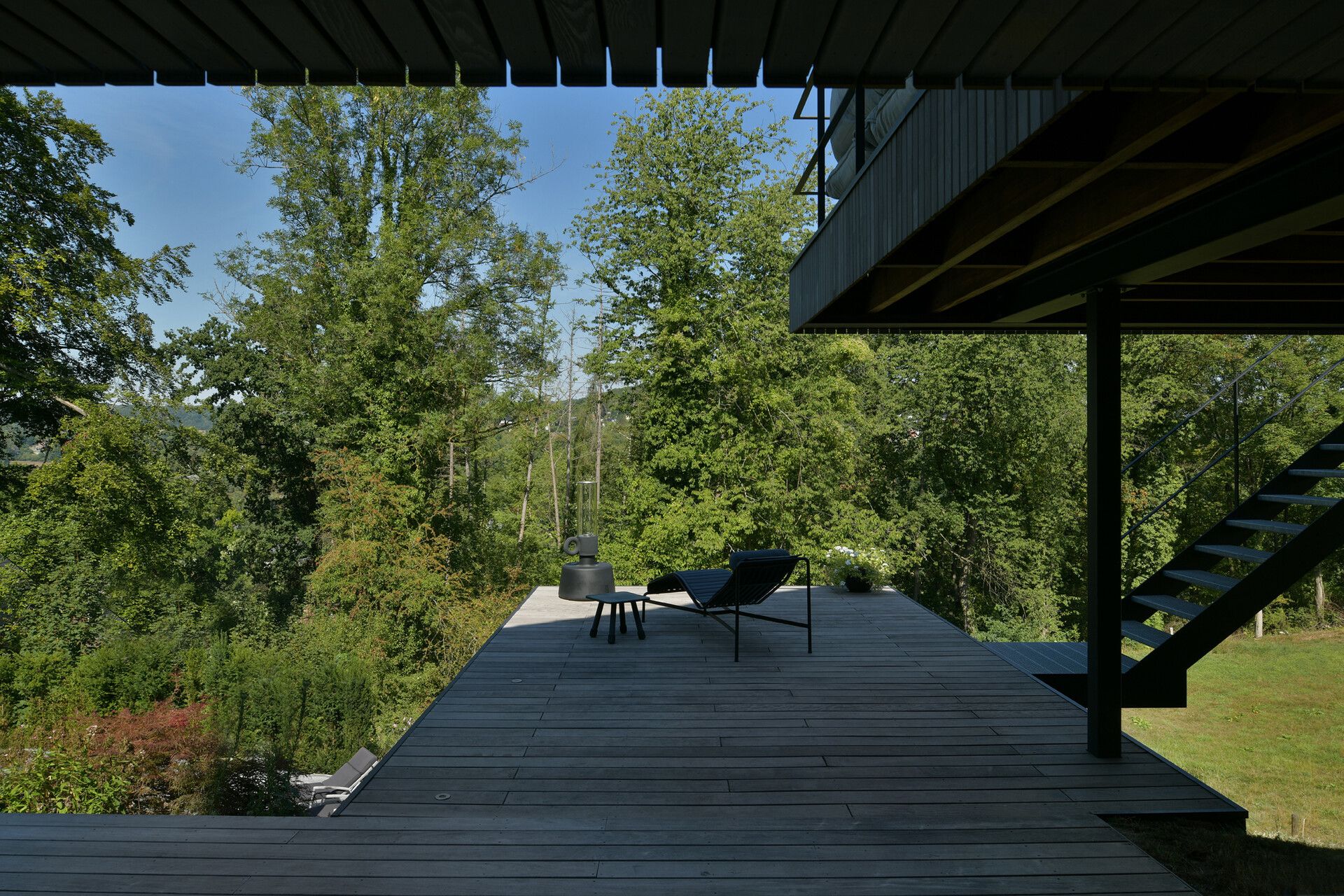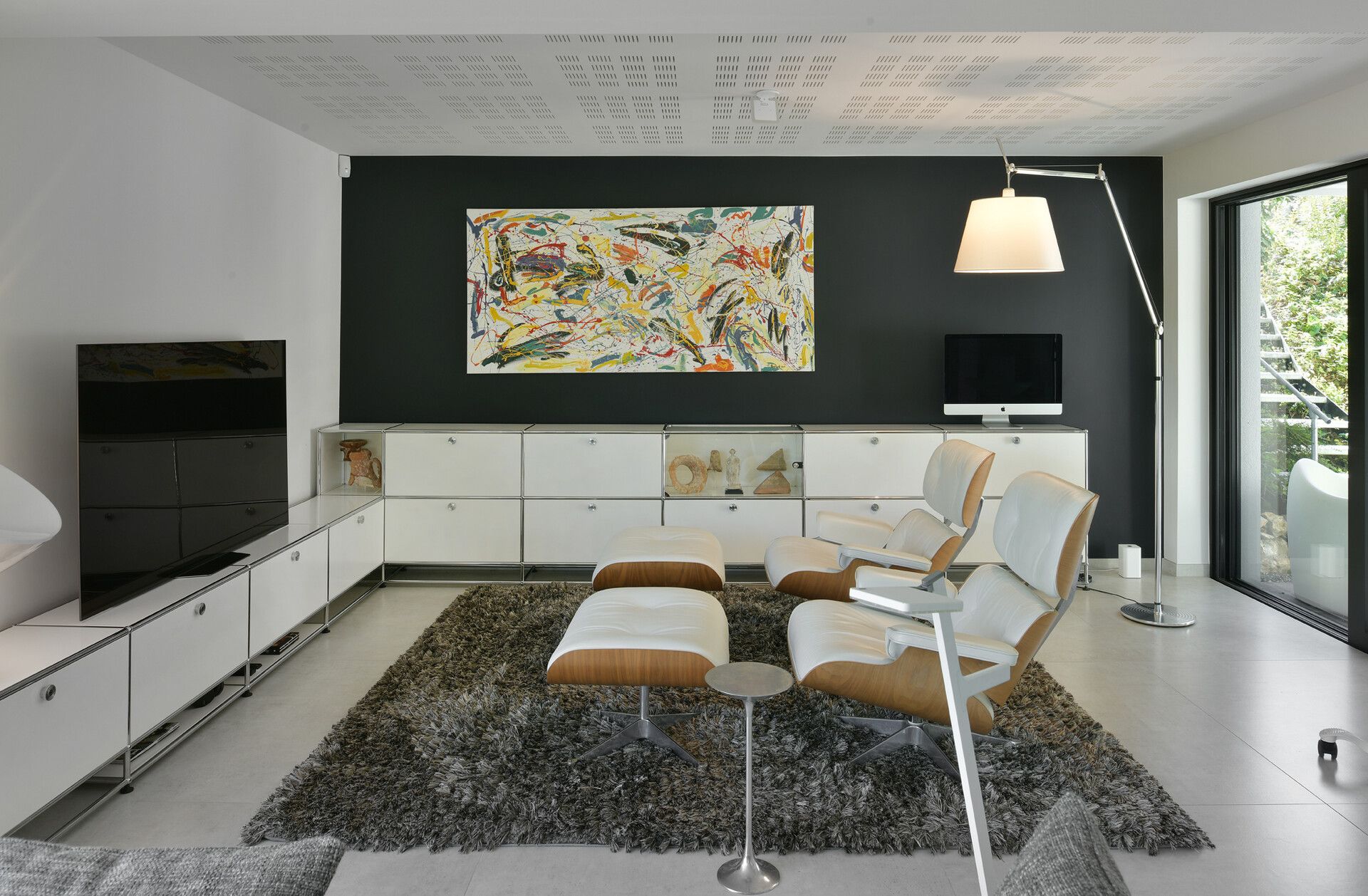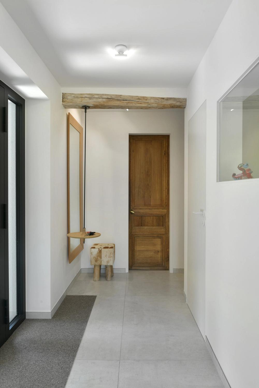 L’implantation du mobilier d’intérieur a été pensée pour prolonger cette ouverture vers l’extérieur : lignes épurées, circulation fluide et choix de textures naturelles renforcent la sensation de continuité entre intérieur et paysage. Ce projet illustre notre volonté de créer des espaces chaleureux, fonctionnels et profondément connectés à la nature.