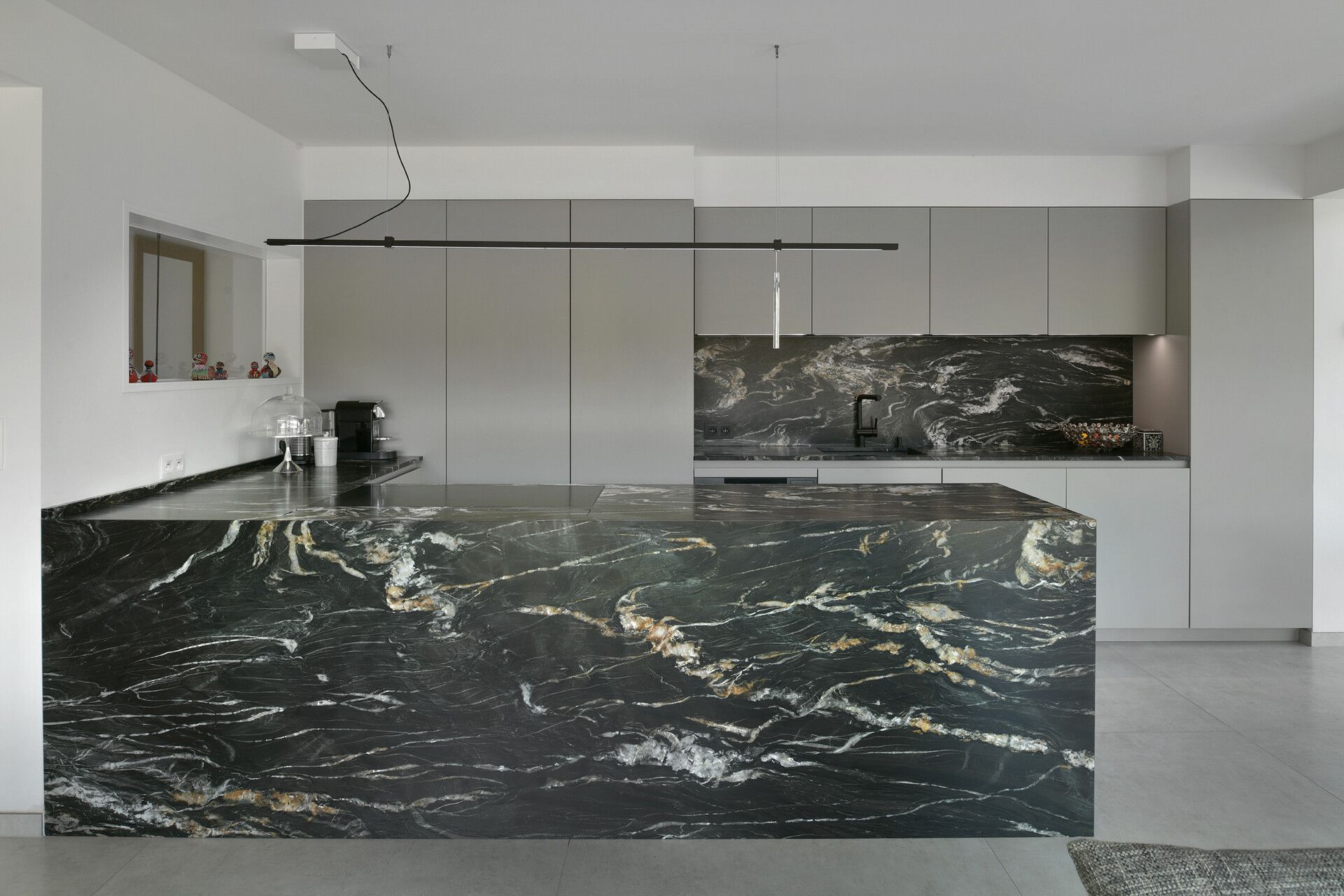 Dans ce projet, nous avons imaginé et réalisé un aménagement intérieur mettant en valeur la relation étroite entre l’habitat et son environnement naturel. La cuisine, véritable cœur de la maison, a été conçue comme un espace de convivialité et d’échanges, où les matériaux bruts et les teintes douces dialoguent harmonieusement avec la lumière et la végétation environnante.